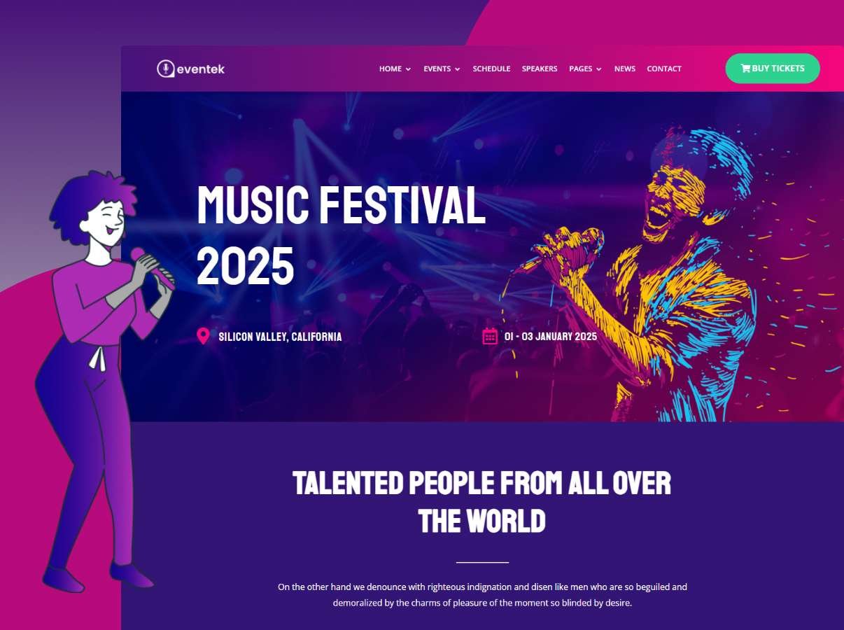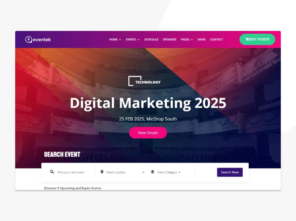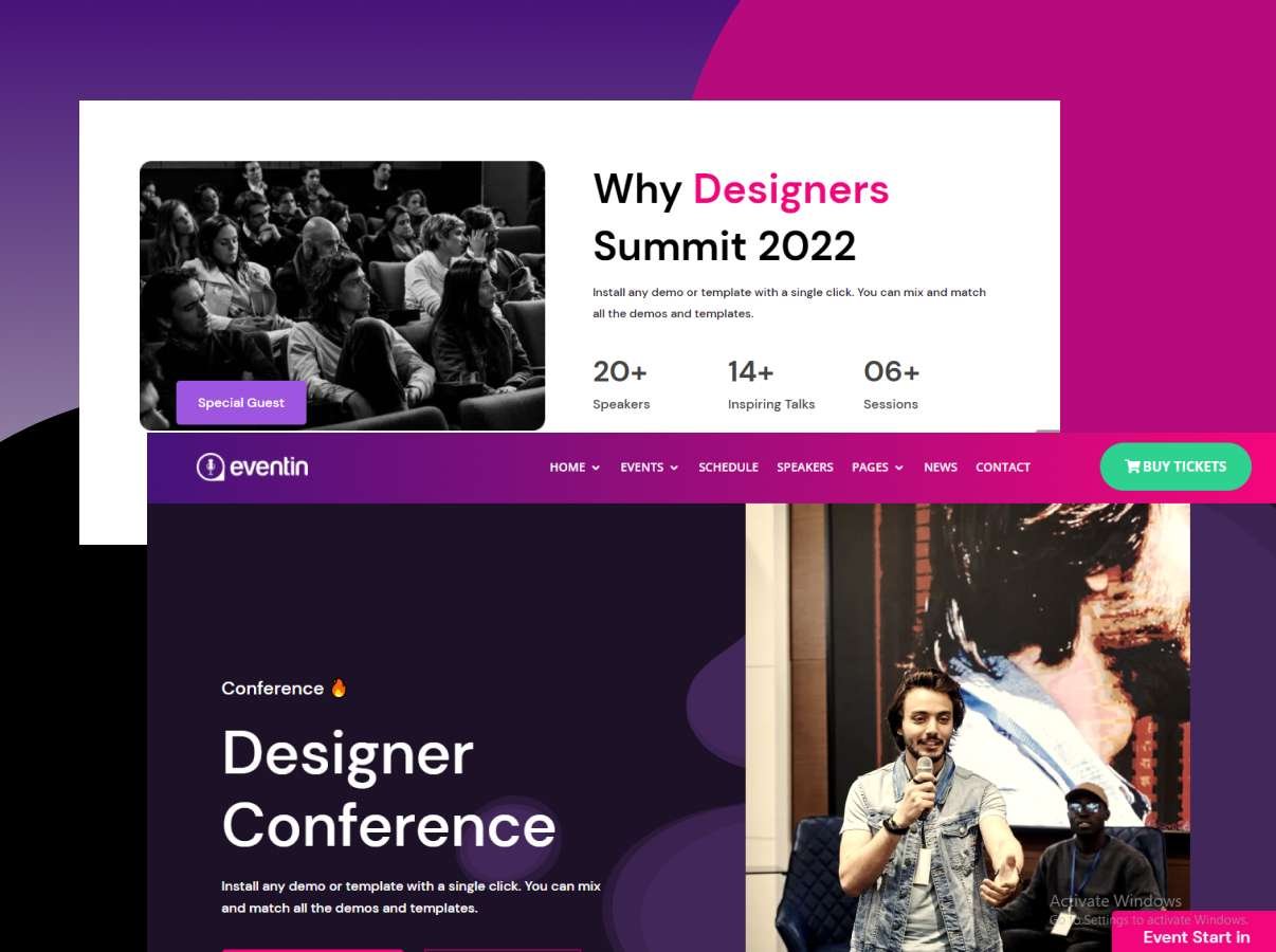 We designed Eventin theme to make it works especially for events & conference site.